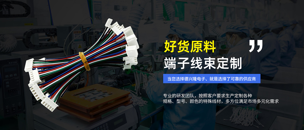 东莞德兴隆电线介绍东莞端子线束加工|端子线束加工厂家|端子线批发|端子线价格0769-23015789 本公司专业生产各类电子线,端子线 硅胶线 铁弗龙线 红白排、蓝白排 、 PVC 、PE、UL电子线、OK线、单支线、针座、胶壳、等, 线材型号有:100